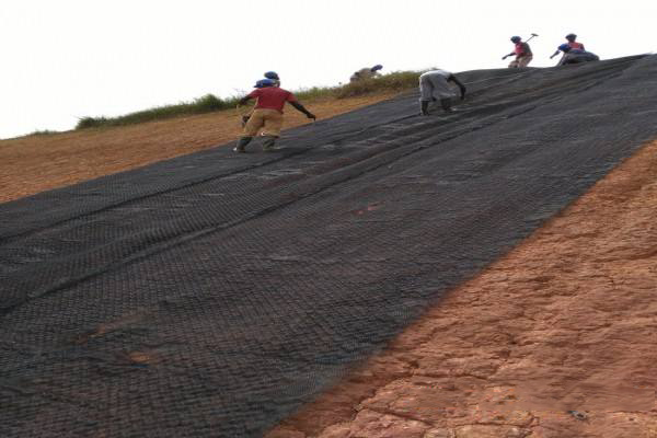 主要是清除坡面上已死的雜草、草根、施工垃圾、較大的石塊等不利護(hù)坡草籽生長(zhǎng)的東西。將這些清除后要用鐵耙將坡面摟平,這樣有利于肥料均勻的掛載坡面,不致全部滑落到坡腳,使得植被毯(草毯)更好地貼在坡面上。