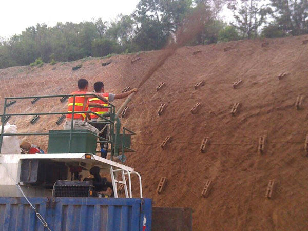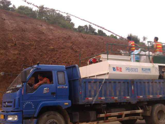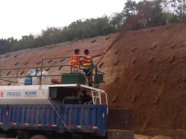 安徽六安金寨縣位于皖西邊陲是安徽省面積大、人口多的山區(qū)縣,金寨縣某地坡面裸露水土流失嚴(yán)重,為了能夠較好的控制水土流失,提高自然植被覆蓋率,金寨縣某地邊坡綠化采用客土噴播的方式施工,木質(zhì)纖維作為客土噴播重要的噴播基材之一,必然不可缺少,通過(guò)客戶(hù)介紹金寨縣噴播工程項(xiàng)目組采用我司專(zhuān)用噴播木質(zhì)纖維作為施工基材,進(jìn)行客土噴播邊坡綠化。