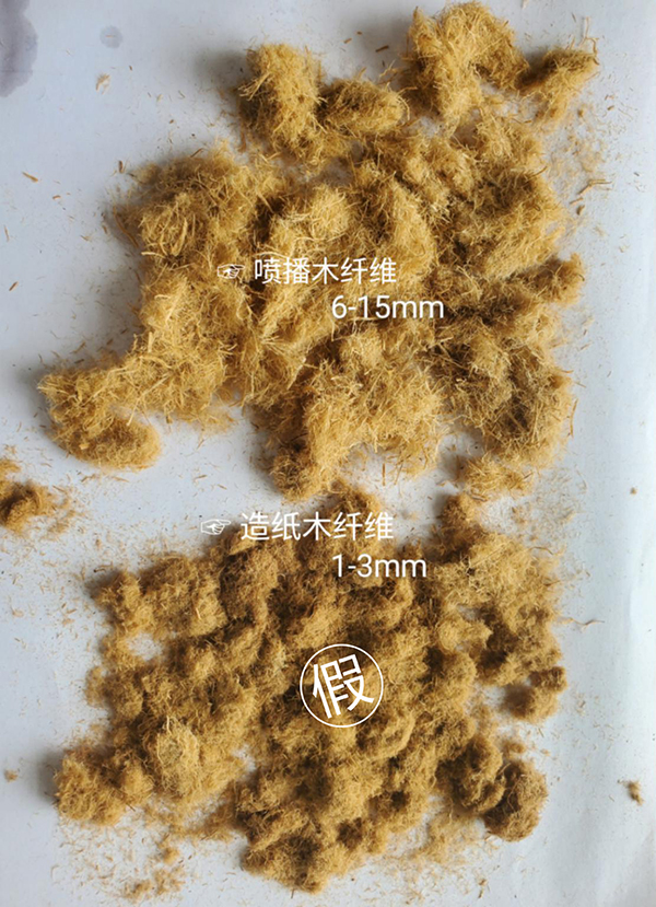注意事項(xiàng):紙漿木纖維,外形看起來和噴播木纖維特別相似,吸水性很好,無吸附力,許多不良經(jīng)銷商喜歡以此冒充噴播木纖維來欺騙施工單位,導(dǎo)致許多工程失敗。
